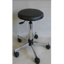 Tabouret à assise en vinyle et à piètement en acier chromé. Epaisseur 55 mm, hauteur 480 à 680 mm.