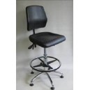 Siège pour salle blanche, à assise en polyuréthane et à piètement en acier cintré. Hauteur 420 à 550 mm.