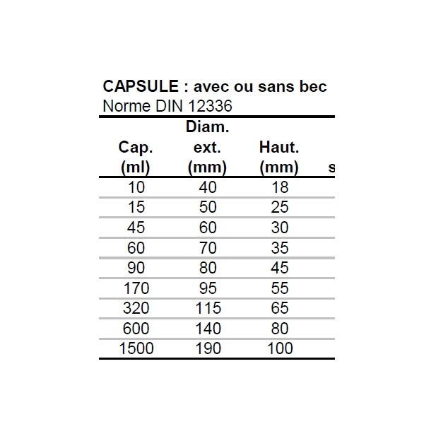 CAPSULE EN SILICE PURE (QUARTZ) SANS BEC CAPACITE90 ML