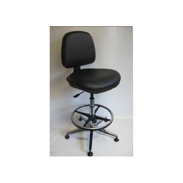 Siège de laboratoire à assise en Boeing et à piètement en aluminium. Hauteur 640 à 890 mm.