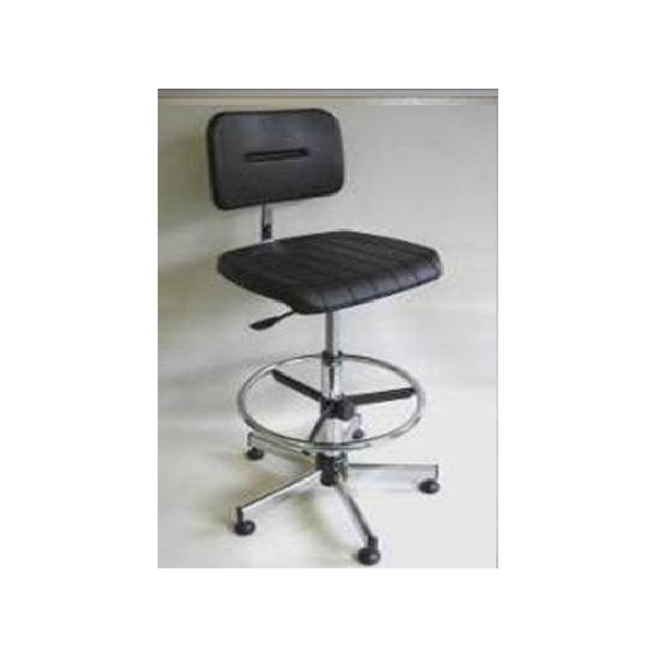 Siège de laboratoire à assise en polyuréthane et à piètement en acier chromé. Hauteur 400 à 530 mm.