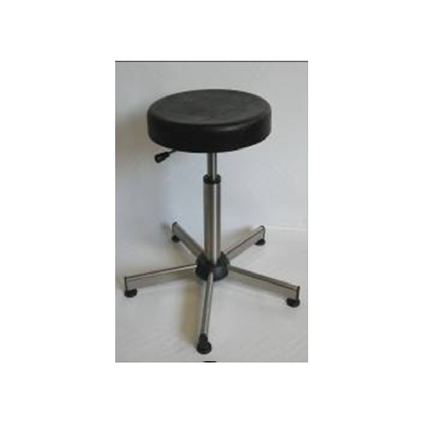 Tabouret à assise en polyuréthane et à piétement en inox. Epaisseur 50 mm, hauteur 480 à 680 mm.