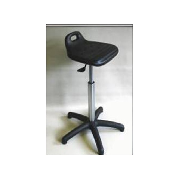 Assis-debout à assise en polyuréthane et à piètement en acier chromé. Hauteur 620 à 870 mm.