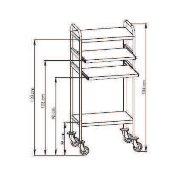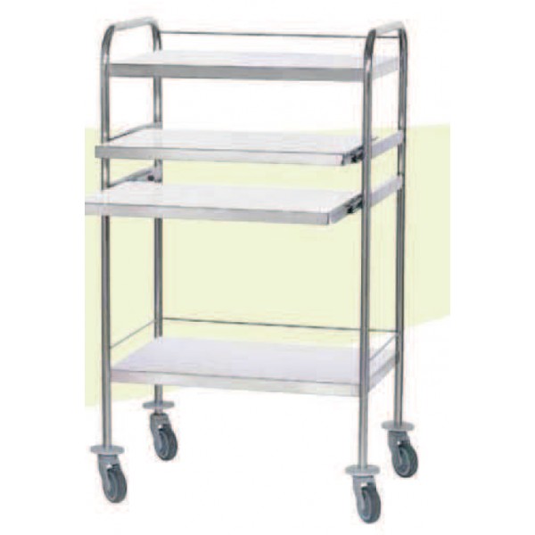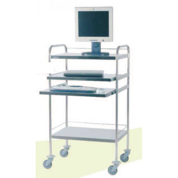 Chariot informatique en inox, avec tablette coulissante, dimensions 750x500 mm.
