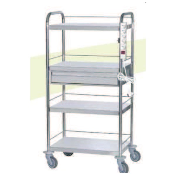 Chariot 4 plateaux en inox, à bords relevés. Dimensions 750x500 mm.