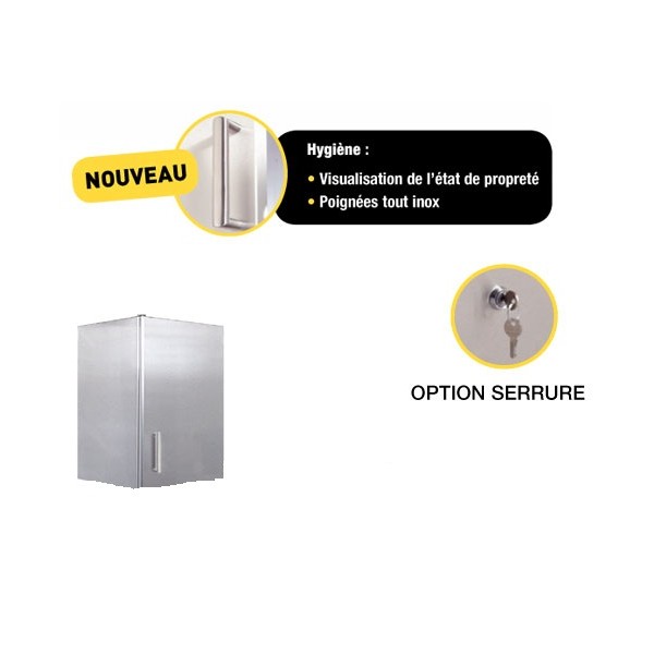 Meuble mural inox, Ã 1 porte battante. Longueur : 450 mm.