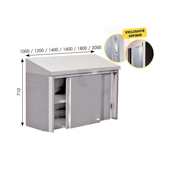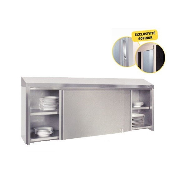 Meuble mural inox, Ã 2 portes coulissantes. Longueur : 1800 mm.