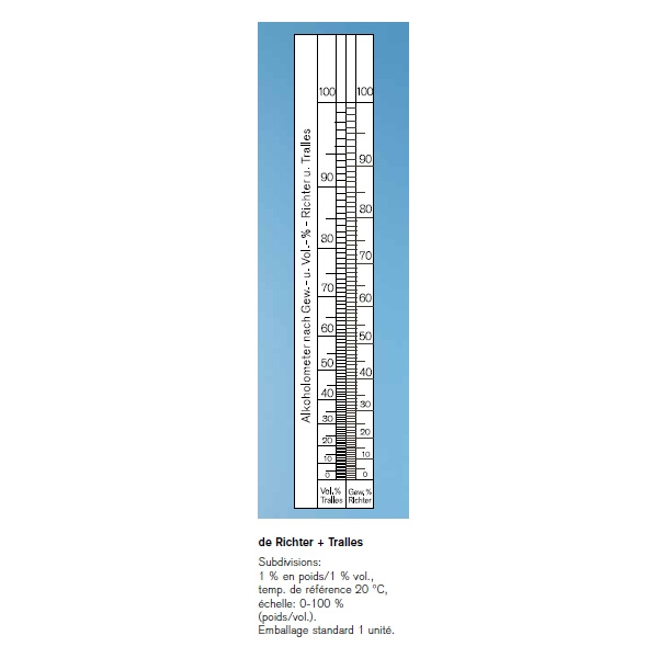 ALCOOMÈTRE STANDARD DE RICHTER + TRALLES SANS THERMOMÈTRE
