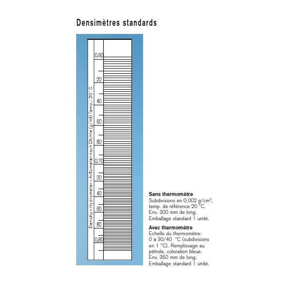 DENSIMÈTRE STANDARD AVEC THERMOMÈTRE 1,000-1,200 G/CM3